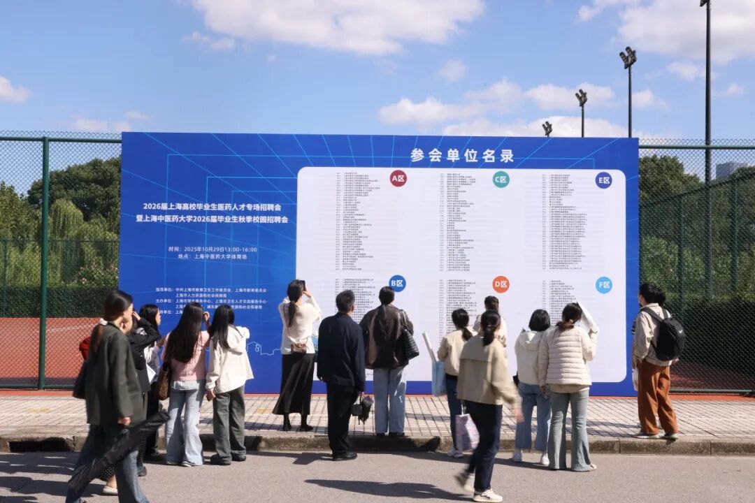 为全面贯彻党的二十届四中全会精神和全国教育大会精神,促进高校毕业生高质量充分就业,10月29日下午,在中共上海市教育卫生工作委员会、上海市教育委员会、上海市人力资源和社会保障局的指导下,由上海市学生事务中心、上海市卫生人才交流服务中心、上海中医药大学、浦东新区人力资源和社会保障局联合主办的2026届上海高校毕业生医药人才专场招聘会暨上海中医药大学2026届毕业生秋季校园招聘会在上海中医药大学顺利举行,全市高校数千名毕业生参会。